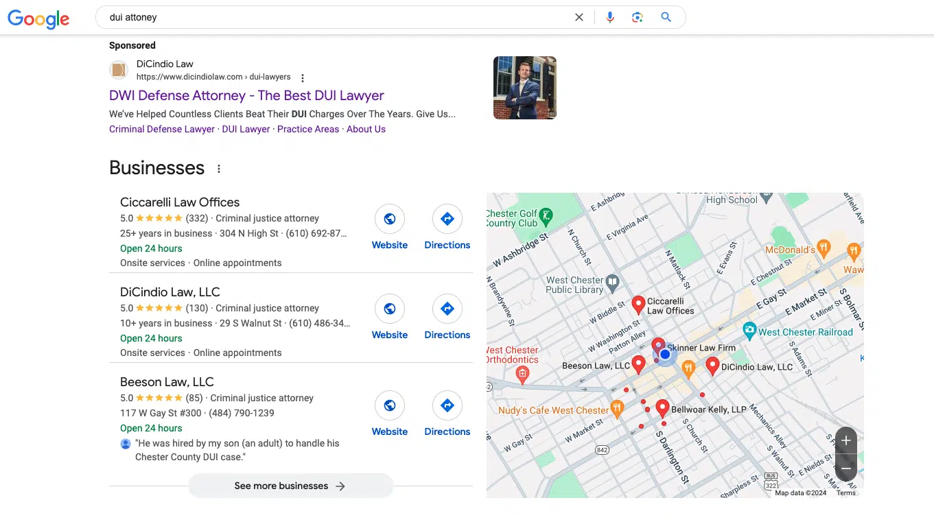 Before Bad Rhino was engaged by DiCindio Law, the brand never had a complete digital marketing strategy. Any work done on their digital marketing previously was completed piece meal without a cohesive plan across the entire digital presence. Due to that, our team had limited information to work with and had to build a DUI Attorney Digital Marketing strategy from the ground up.